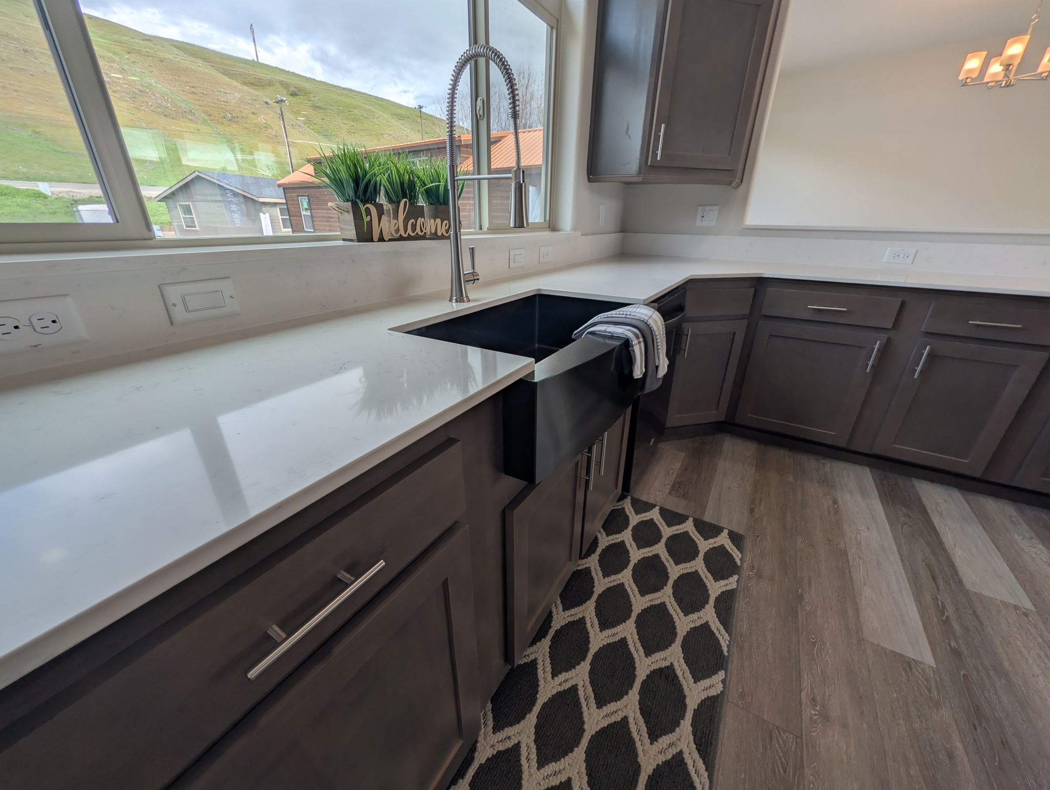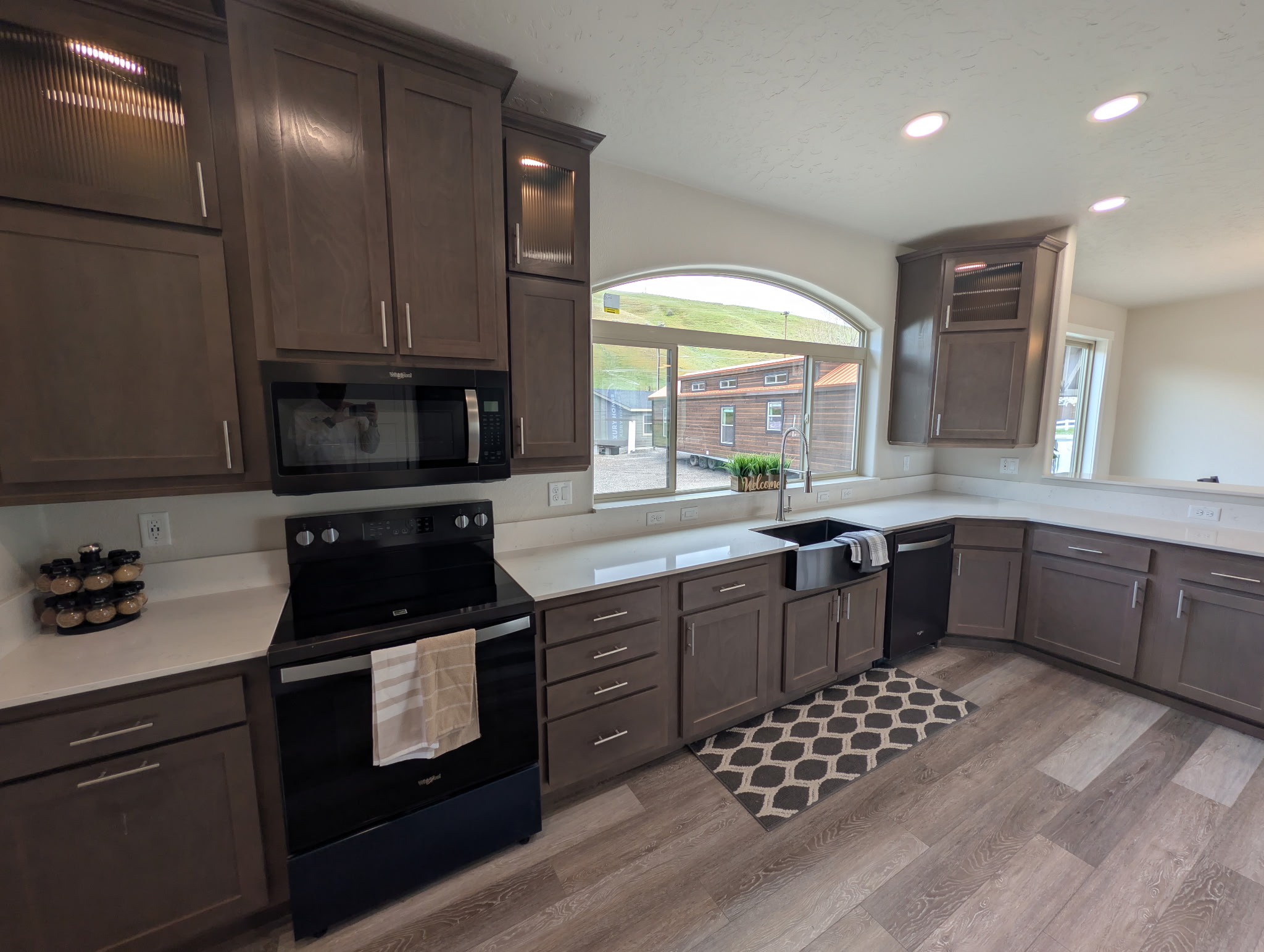 Kitchen Window: Decorative window valances throughout